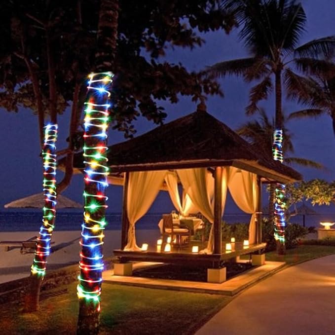 - Widely Used IP65 Waterproof Solar Rope Lights: Solar powered rope lights outdoor have IP65 waterproof rating, able to working outside in any weather including rainy snowy and foggy..., You can place this outdoor solar rope lights in anywhere of your house even the roof. Also really match to special events or festivals like Party, Xmas, Thanksgiving, Wedding, Birthday, Valentine’s day and so on. Our Outdoor rope lights solar is a great decoration choice both for Indoor and outdoor.