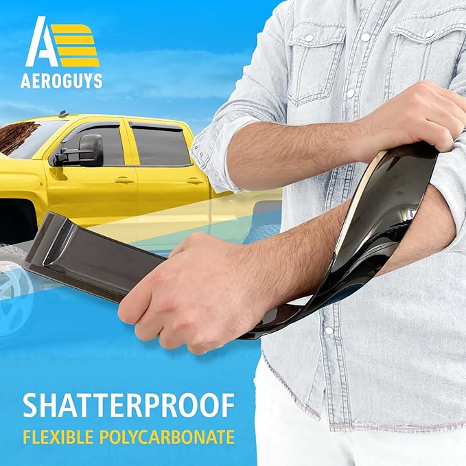 - Incredibly Durable AEROGUYS Auto Window Deflectors – They are made with strong and tough polycarbonate which is clear and scratch-resistant. They also provide UV protection making your ride more comfortable under all weather conditions.