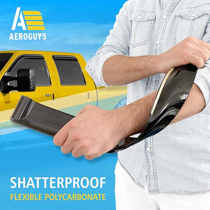 - Incredibly Durable AEROGUYS Auto Window Deflectors – They are made with strong and tough polycarbonate which is clear and scratch-resistant. They also provide UV protection making your ride more comfortable under all weather conditions.