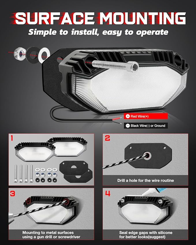 - IP68 WATERPROOF - Now upgraded with a cleverly designed cable management channel on the back for a flush, seamless install that looks as clean as it performs. Plus, our integrated waterproof gasket at the wire exit point seals out moisture while keeping things sharp and tidy. Built to handle any weather mother nature throws