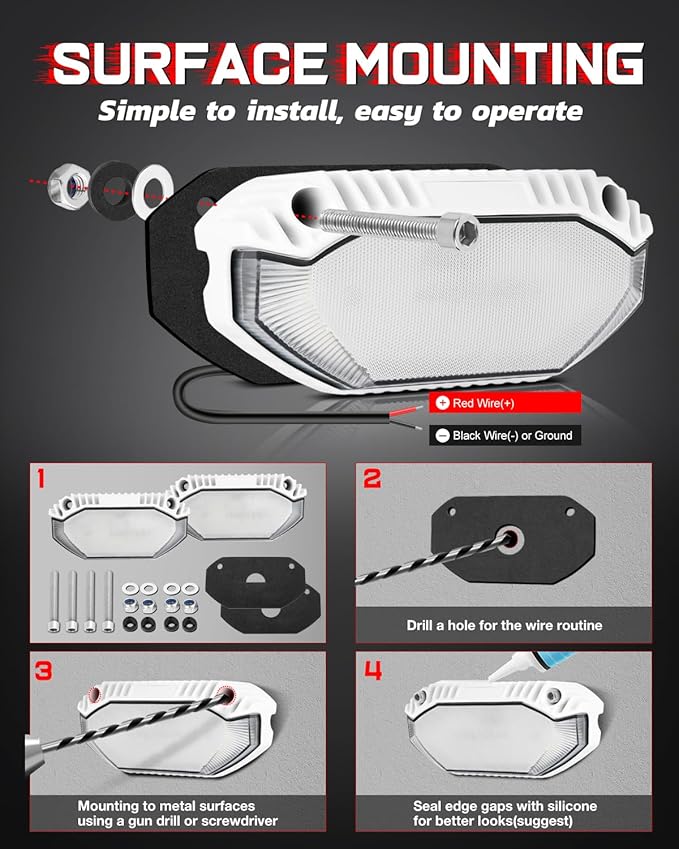 - IP68 WATERPROOF - Now upgraded with a cleverly designed cable management channel on the back for a flush, seamless install that looks as clean as it performs. Plus, our integrated waterproof gasket at the wire exit point seals out moisture while keeping things sharp and tidy. Built to handle any weather mother nature throws