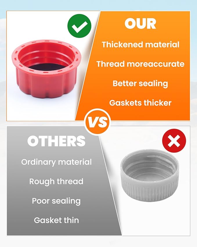 - Secure Seal :The gas can cap provides a secure seal to prevent leaks and spills. It features coarse threads for a tight fit, ensuring that your gasoline is safely contained at all times