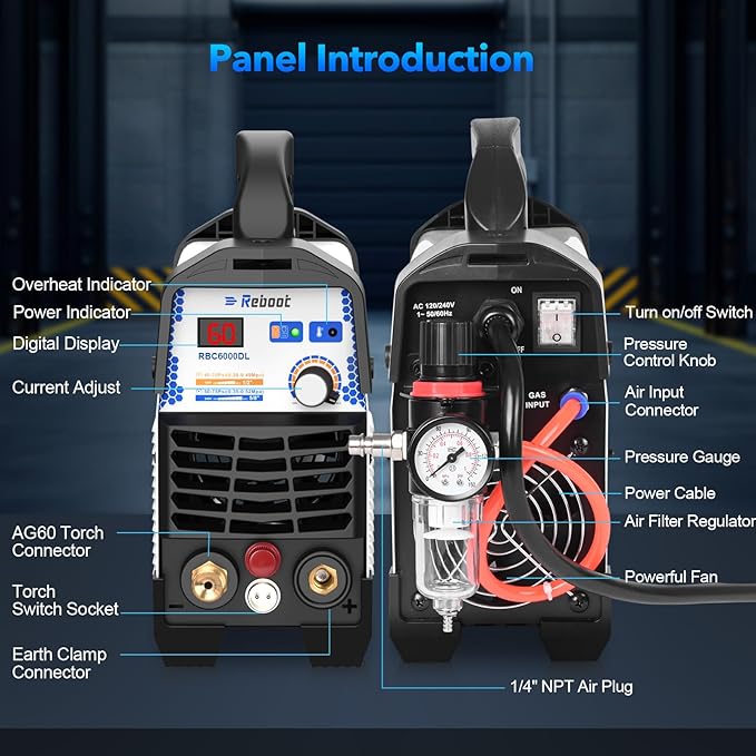 Reboot Plasma Cutter, 2025 Upgraded 60Amps Cutter Machine with 120/240V Dual Voltage DC Inverter IGBT 1/2 Inch Clean Cut for Beginners DIY and Small Business Projects