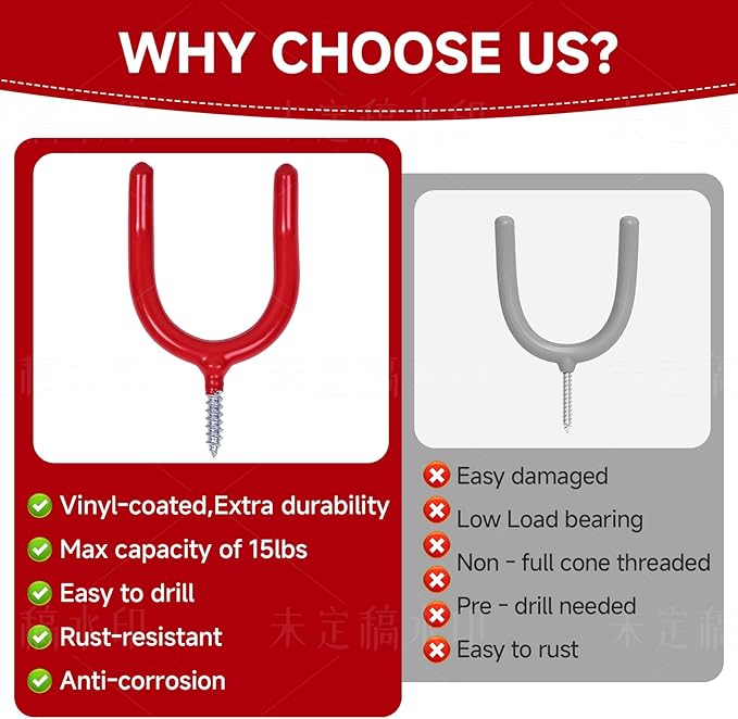 - **Rust-Resistant & Long-Lasting** Anti-slip coating also adds a **protective layer** against moisture and corrosion. Suitable for garages, workshops, sheds, and outdoor storage. These hooks provide **durability, security, and versatility**, making them a must-have for an efficient garage storage system