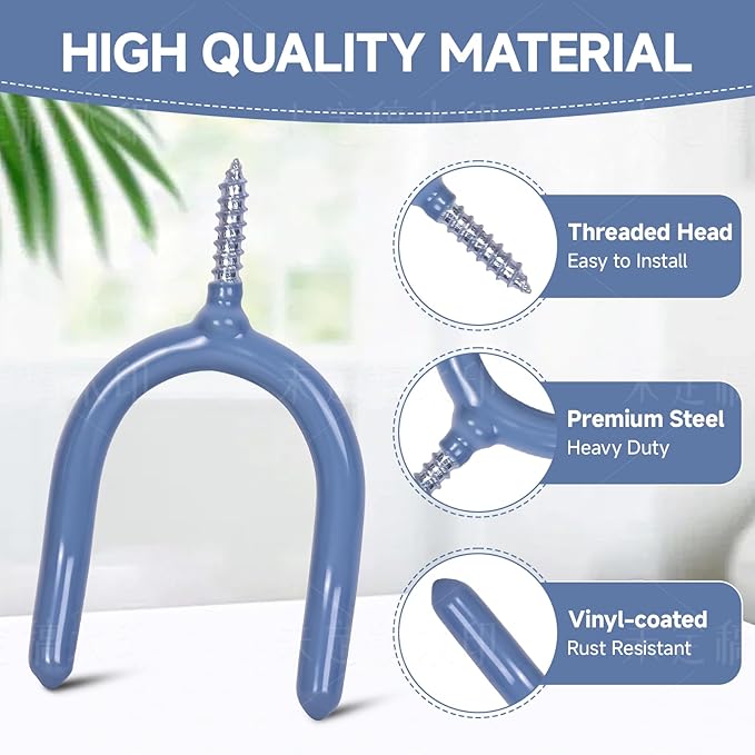 - **Two Mounting Options for Flexibility** *U-shaped hook* slot into pegboards, slat walls, or wire racks. *Screw-in hooks* allow direct wall or ceiling mounting for permanent storage