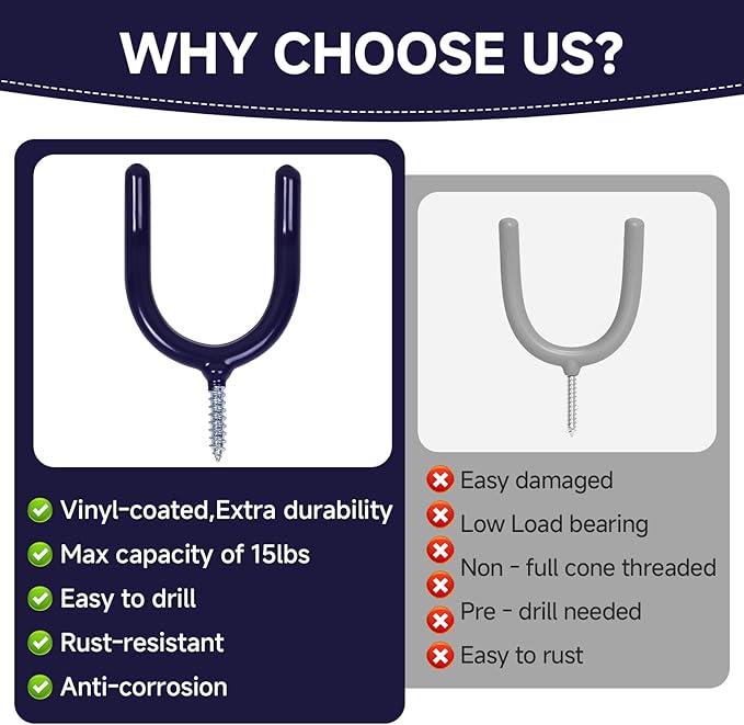 - **Rust-Resistant & Long-Lasting** Anti-slip coating also adds a **protective layer** against moisture and corrosion. Suitable for garages, workshops, sheds, and outdoor storage. These hooks provide **durability, security, and versatility**, making them a must-have for an efficient garage storage system