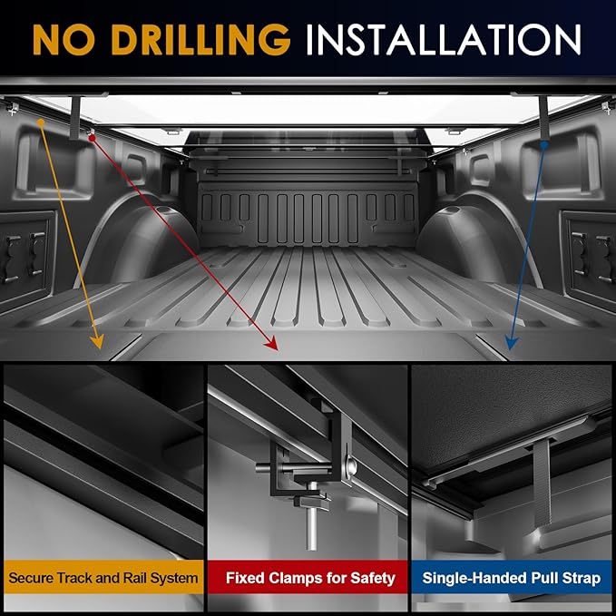 - Hassle-Free No-Drill Installation:Install your Skexi low-profile hard folding cover in minutes by leveraging your Tundra's factory Utility Track System! No drilling, no extra rails, and no complex modifications — simply attach directly to your truck's OEM tracks. All tools included for quick setup