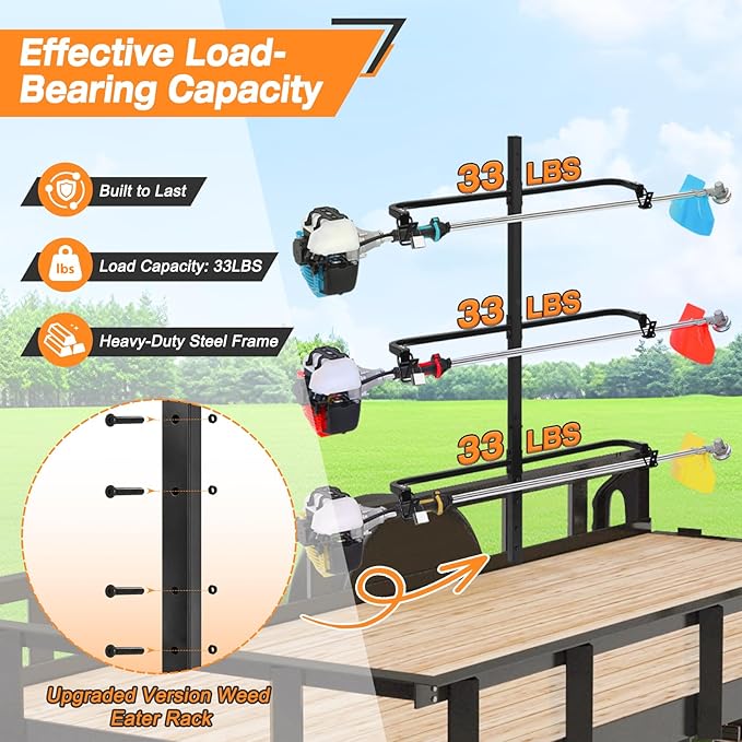 - MULTIPLE MOUNTING OPTIONS - Designed for quick and easy installation. The trimmer rack for open trailer provides all the components needed to mount the trimmer, ensuring a safe and stable installation by offering various mounting options such as wall-mount or trailer-mount to suit different locations and settings.