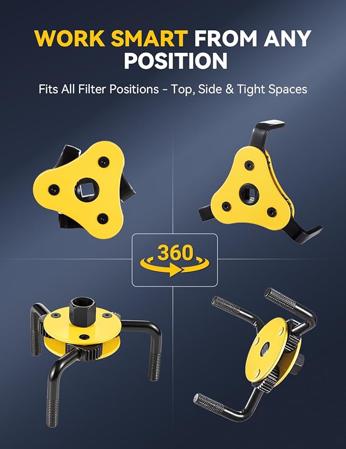 - Effortless Oil Filter Removal: Say goodbye to stubborn filters; The self-tightening jaws grip securely and remove filters in seconds with minimal effort