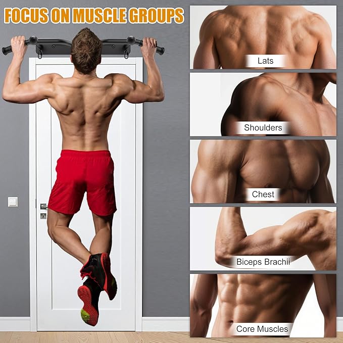 - 🏋️♀️【39 Inch Wide & 6 Inch Wall to Bar Space】The door mount bar has a total length of 39 inches and a wall clearance of 6 inches, which allows you to have enough space to do full movements without hitting the wall or the door frame. You can also hang a heavy bag or a TRX strap on the bar to add more variety to your workout