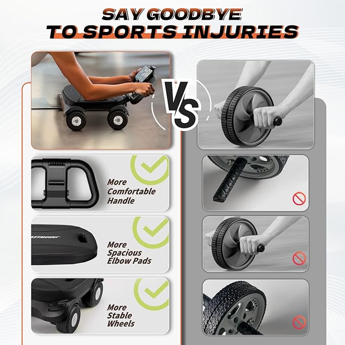 - Automatic Rebound Design: Automatic rebound wheels aids push-pull transitions; smooth-rolling ab roller wheel maintains consistent motion rhythm; outperforms standard exercise wheels