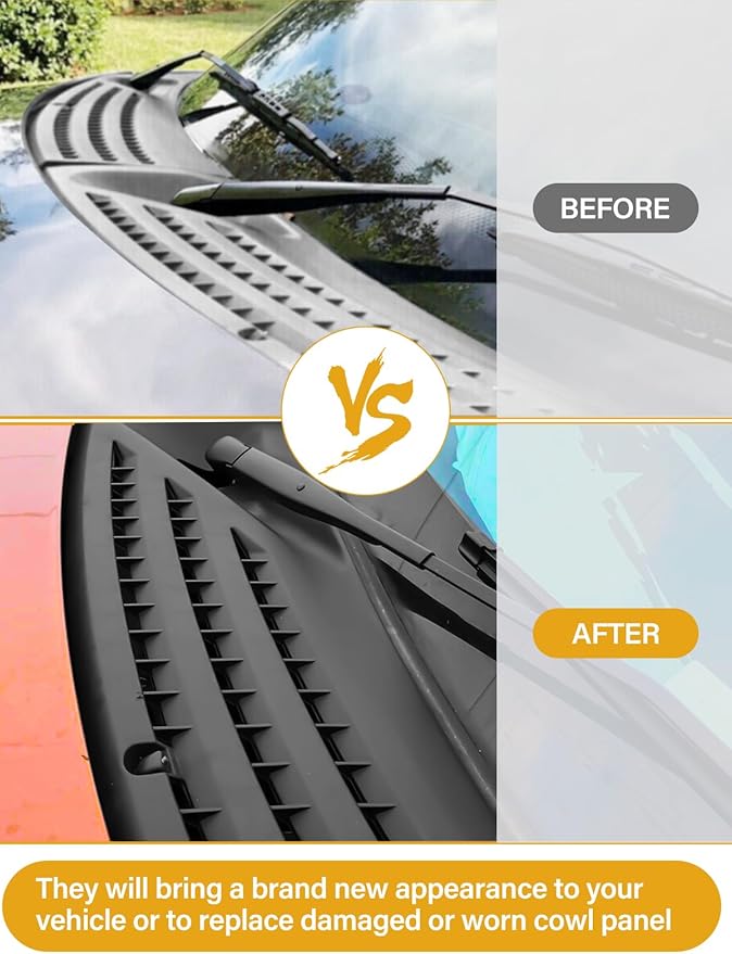 - 【PREMIUM QUALITY】: The Front Cowl Panel Grille Vents is made of high-quality PP + TPE materials and upgraded UV protection materials to prevent UV light from causing the windshield wiper cover panel to fade, which is the perfect choice for your outdoor application and is sure to provide reliable performance