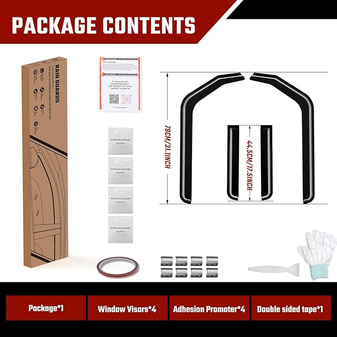 - 【Full-Size Side Window Visors】Engineered to fit your vehicle’s year, make, and model, this seamless side window deflector features a contour- hugging design. This 4-piece set includes passenger and driver side window deflectors that create a seamless look that protects you from sun rays, rain drops, and wind while you’re driving with the window down