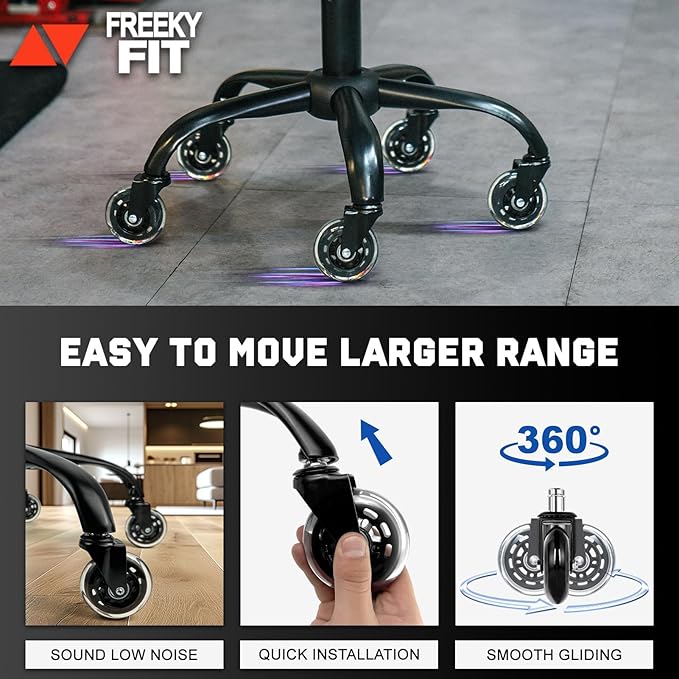 - 【Easy to Move】This heavy-duty work stool is equipped with 5 upgraded smooth-rolling rubber wheels. These casters easily glide over cracks and debris on any floor surface. The 360° swivel shop chair provides larger range of motion and movement.