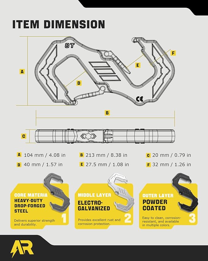 - High-Strength, All-Terrain Performance – Crafted from premium G80 carbon steel with electro-galvanized corrosion-resistant coating and a durable powder-coated finish, offering superior strength, weather resistance, and easy cleaning. With a 17,636 lb working load limit and 30,864 lb breaking strength, it can handle heavy pulls, steep inclines, and rugged terrains with total confidence