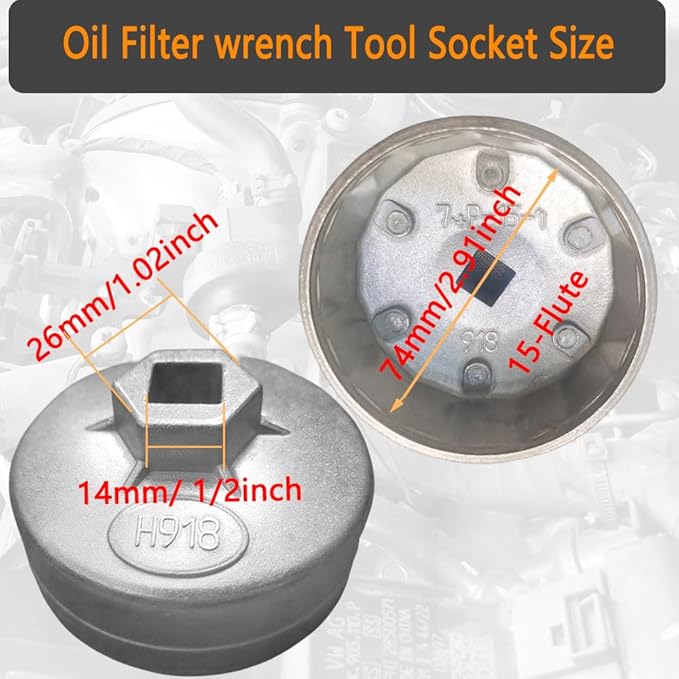 74mm 15-Flute 918 Oil Filter Wrench Tool Socket for AC Delco PF63E PF64, Fits Chevy Silverado 4.3L & Equinox 1.5L