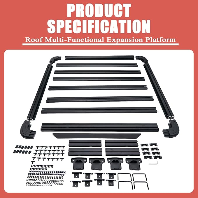 - - More Flexible Expansion: The top of the crossbar is equipped with a T-shaped groove, which has stronger expandability and supports flexible installation of various equipment, such as roof box, bicycle rack, kayaks, canoes, side canopy, skis, spare oil tank and other equipment.