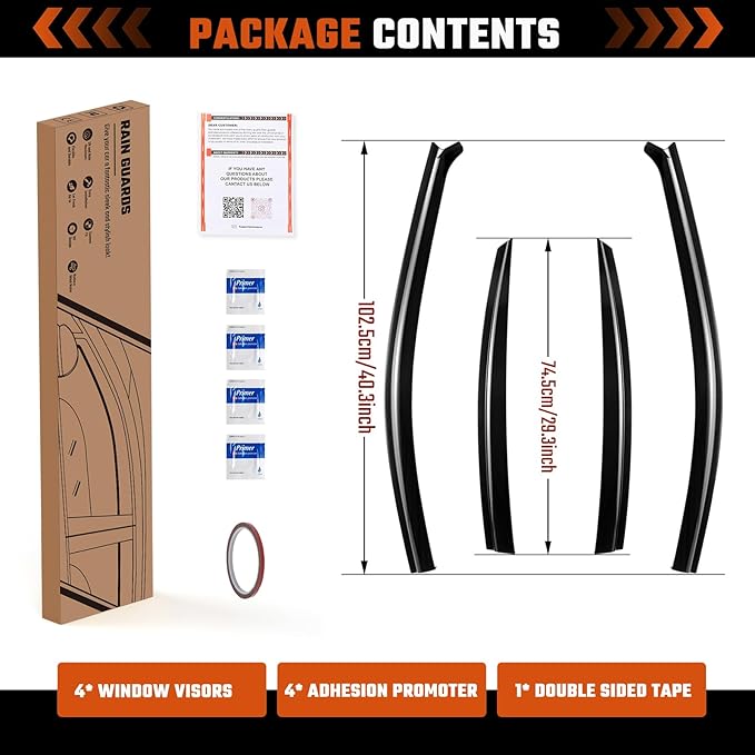 - 【Easy to Install】Each of our window rain guard comes with double-sided automotive grade adhesive tape and degrease wipe that provides a strong and long service life secure installation. No tools or complicated instructions necessary.