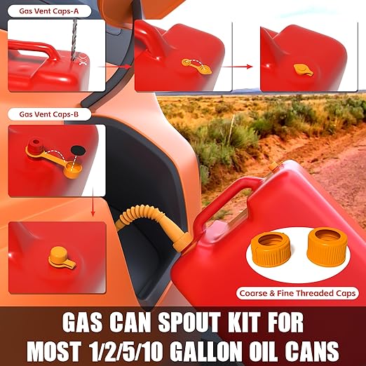 - 【Practical Spout Replacement】 Includes 9PCS: 2 threaded caps (coarse/fine), 1 nozzle tube, 1 nozzle cover, 2 nozzles with rubber gaskets, 2 gas can vent caps, 1 drill, with greater compatibility. Installation is simple.