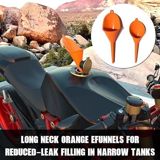 - 【Multi-Use Oil Funnel Kit】 Includes 10pcs: 1 wide mouth funnel with filter to remove impurities; 4 classic red funnels for versatile openings; 2 long neck funnels for reduced-leak filling in narrow tanks; 2 snap-on funnels attach snugly to tanks for spill reduction; 1 flexible detachable extension red oil funnel with great flexibility for filling at different angles.