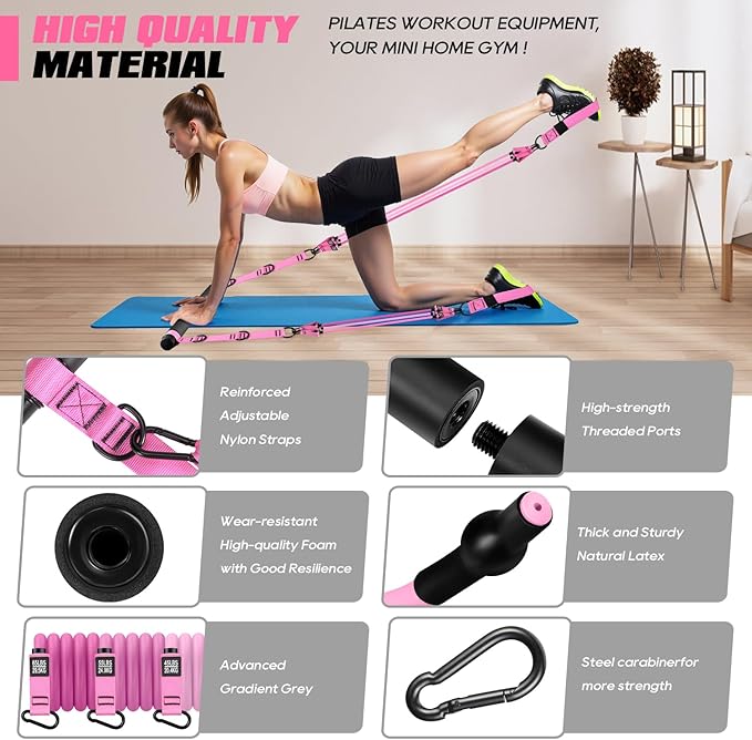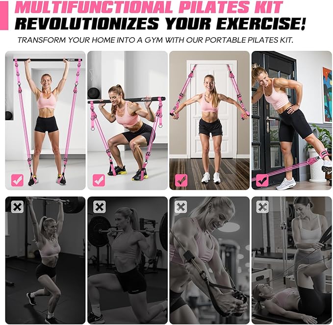 - Complete 16-Piece Pro Home Gym Kit: The most comprehensive Pilates system for home use. Includes 1 multi-functional steel Pilates bar, 2 non-slip foot straps, 6 resistance bands, 2 door anchors, 2 handles, 2 ankle straps, 1 guide, 1 storage bag, and 1 box. Enjoy limitless exercise combinations for full-body workouts without extra purchases.