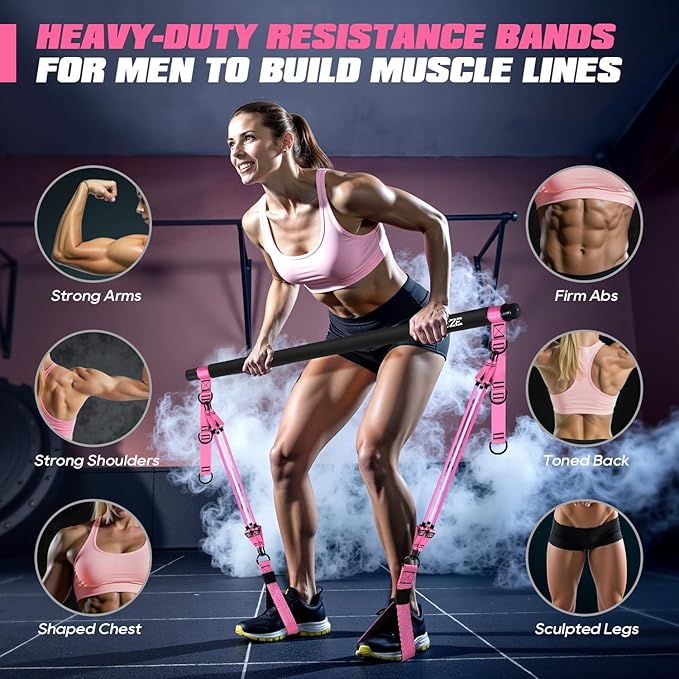 Pilates Bar Kit with Resistance Bands, Heavy Duty Pilates Equipment for Men, Strength Training Bar for Legs, Hip, Back, Arm, Abs, Chest, Shoulders, Portable Home Gym Full Body Workout Equipment