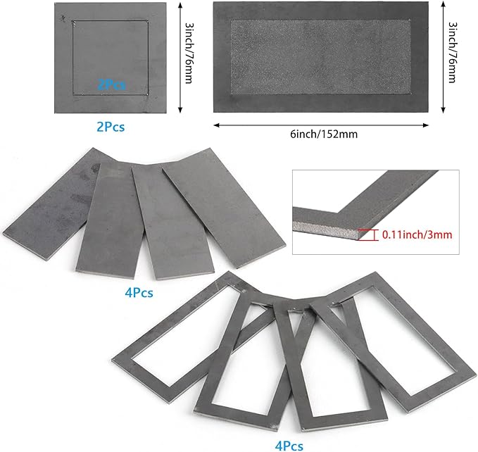 - Specification Parameters: 4pcs 3''×6''×11Ga/ 76.2×152.4×3mm; 2pcs 3''×3''×11Ga/ 76.2×76.2×3mm; 4pcs 2''×5''×11Ga/ 50.8×127×3mm; 2pcs 2''×2''×11Ga/ 50.8×50.8×3mm