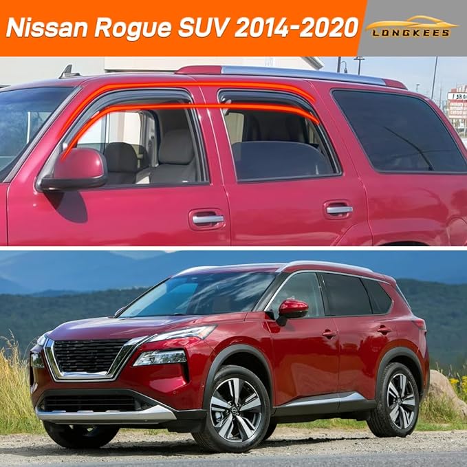 in-Channel Window Visors Rain Guards FIT Nissan Rogue 2014-2020 SUV (2014-2020) – 4-Piece in-Channel Dark-Smoke Polycarbonate Vent Deflectors