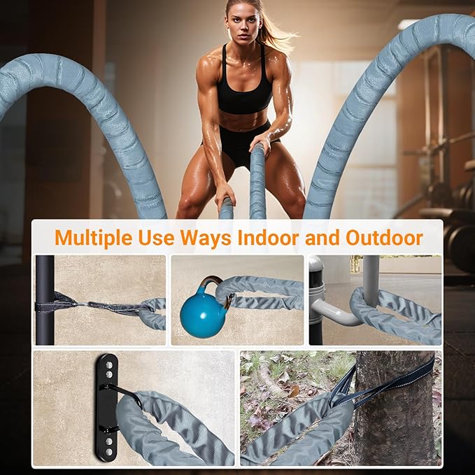 - Fitness Rope With Multiple Usage Modes: Whether it's for home fitness or outdoor sports, is an excellent choice.The training rope can be used for up - and - down, pulling or climbing movements - combat ropes, exercise ropes, training ropes, fitness ropes, undulating ropes, adjustment ropes, climbing ropes, competition ropes, etc. If you are outdoors, you can directly use the accessories to tie it to a tree, a fixed pole, outdoor fitness equipment, or use the anchor we provide for fixation.