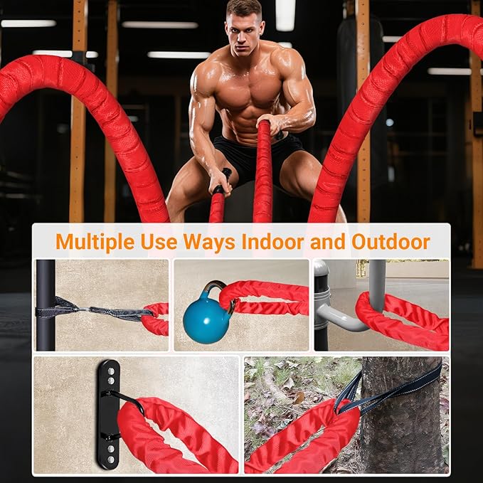 - Fitness Rope With Multiple Usage Modes: Whether it's for home fitness or outdoor sports, is an excellent choice.The training rope can be used for up - and - down, pulling or climbing movements - combat ropes, exercise ropes, training ropes, fitness ropes, undulating ropes, adjustment ropes, climbing ropes, competition ropes, etc. If you are outdoors, you can directly use the accessories to tie it to a tree, a fixed pole, outdoor fitness equipment, or use the anchor we provide for fixation.