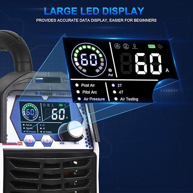 Reboot Pro 60A Plasma Cutter 2025, Pilot Arc Non-Contact Cutting, 120V/240V Dual Voltage,Large Digital Smart Screen, Enhanced for Metal/Mesh/Stainless Steel, 1/2'' Clean Cut 3/4" Max Cut