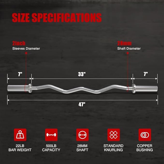 - High-Quality Construction: The curl barbell bar is made of high-grade solid steel with a corrosion resistant chrome plated finish, maximum load capacity is 500lbs, compatible with 2-inch Olympic weight plates, very suitable for beginners and professionals, this bar is really a great option for you to do strength training.