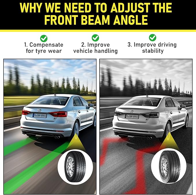 - Compatibility: Designed explicitly for automotive use, this wheel alignment tool kit offers precise measurements for car alignment, ensuring optimal performance and safety