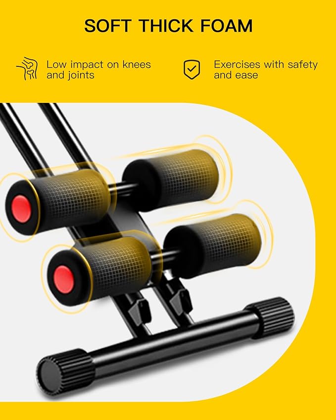 - Thickened Rollers and Foam: Ab crunch machine features reinforced thick rollers and plush foam padding that enhance durability and safety. Extra-thick knee and elbow cushions reduce joint pressure for maximum comfort. Smooth, silent rollers provide a quiet, joint-friendly workout experience, encouraging longer, more effective training sessions.