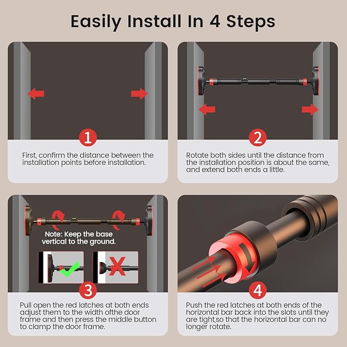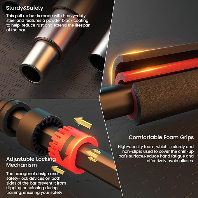 Pull Up Bar for Doorway, Adjustable Door Frame Pull Up and Chin Up Bar, Total Upper Body Workout Bar for Home Gym Workouts