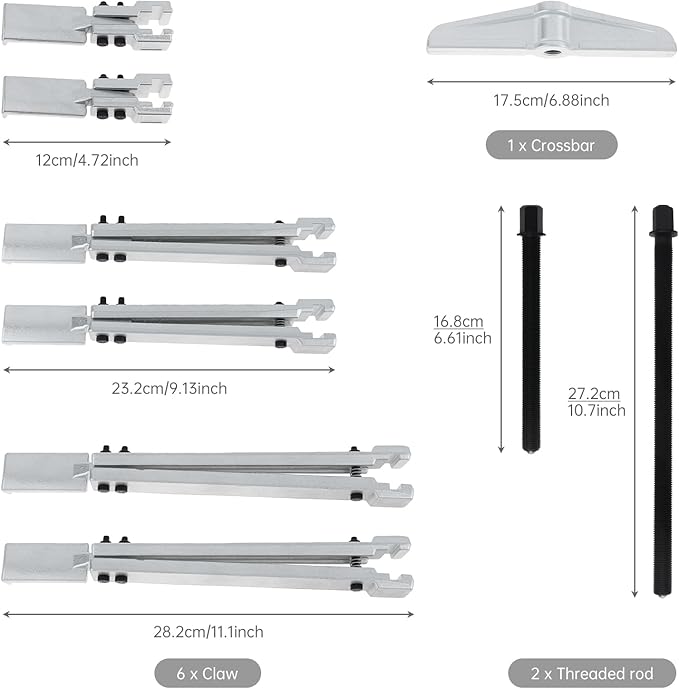 - 3-in-1 Multi-Size Bearing/Pulley Puller Kit: Includes three puller sizes (4.7", 9.1", and 11.1") plus a 9-piece adjustable beam and screw set, making this pulley puller set versatile and cost-effective for various removal tasks across automotive and industrial applications.