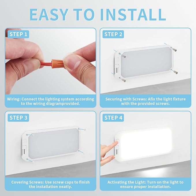 - SLIM & EASY INSTALLATION: Effortless, sleek recessed fit for RV ceiling light! Ultra-slim 0.59" 12v lights profile installs neatly in tight spaces. Includes wire nuts, screws, covers for fast, secure, tidy wiring. Mounts quickly anywhere. Discreet RV ceiling lights LED 12V blend seamlessly. Hassle-free 12v led lights setup