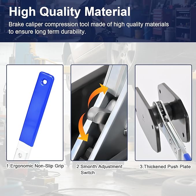- 【PROFESSIONAL COMPRESSION TOOL】 High quality carbon steel brake caliper compression tool upgrades the design of thickening push plate. Its remarkable hardness ensures long-term durability and resistance to deformation.