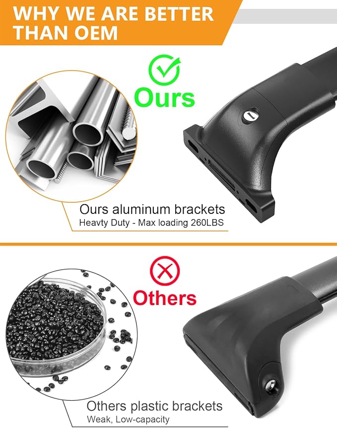 - 【Stronger bar ends】Brackets are made from high grade aluminum,which add to extra security and durability. Heavy-duty clamping design ensures that it is securely fastened to the existing side rails.