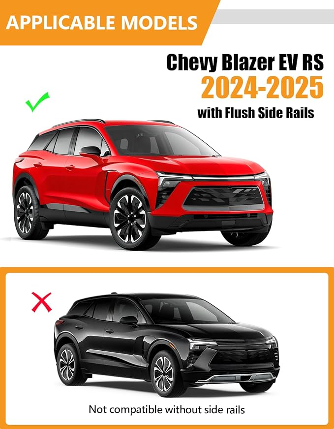 - 【Attention & Fitment】These roof rack crossbars are specifically replacements for Chevy Chevrolet Blazer EV RS AWD 2024 2025 2026 with Flush side rails. Please make sure it fits your vehicle before purchasing.