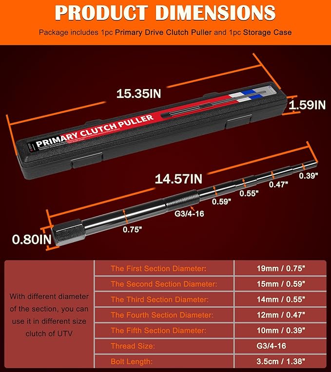- 【100% Satisfaction Guarantee】If you're not satisfied with this Primary Drive Clutch Puller Remove Tool for Polaris, simply return it for getting refund in 30 days. While you have any questions about our products, please feel free to contact us and we will provide the best service. Always buy confidently in Bonbo!