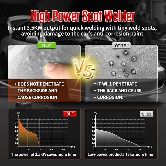 - 【Stable Welding Technology】 The Dent Puller delivers a 3800A current and 3500W voltage in an instant, firmly welding pulling pads with minimal weld spots. It can weld metal sheets under 1mm thickness, with the smallest spot size controlled at 0.58mm—thin enough to avoid damaging the anti-rust paint on the body underside.