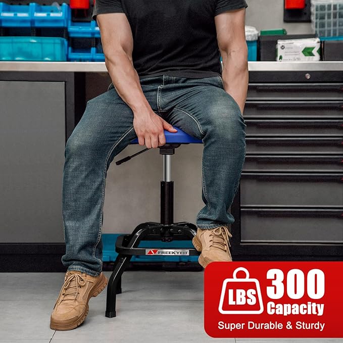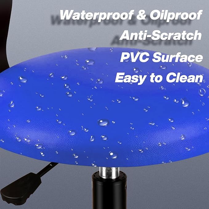 - 【Adjustable Stool】 24.49-30 inch adjustable height. This blue shop stool is equipped with a pneumatic height adjustment mechanism, allowing easily adjust the height from 24.49 to 30 inch. Make it easy to be at a perfect level for whatever task you are doing