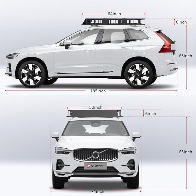 - Size and Load - Engineered to support 250lbs, this heavy - duty cargo carrier is built to handle all your family's adventure gear. Spacious 64"L x 50"W x 6"H platform offers superior loading capacity for the roof rack