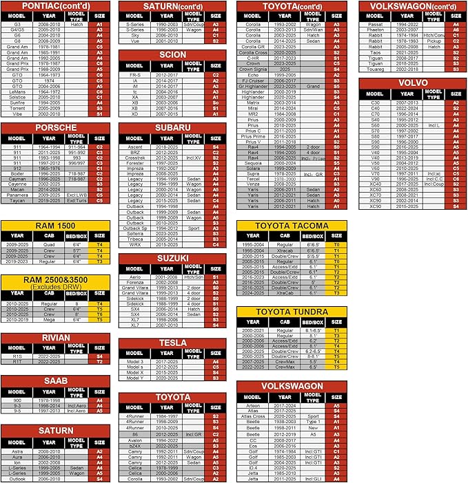 - GUARANTEED GREAT FIT - WAKE UP TO A CLEAN, DRY CAR! Stop wrestling with ill-fitting covers! Find your exact vehicle in our Size Chart for a snug, custom-like fit that actually stays put. We guarantee it protects better because it fits perfectly.