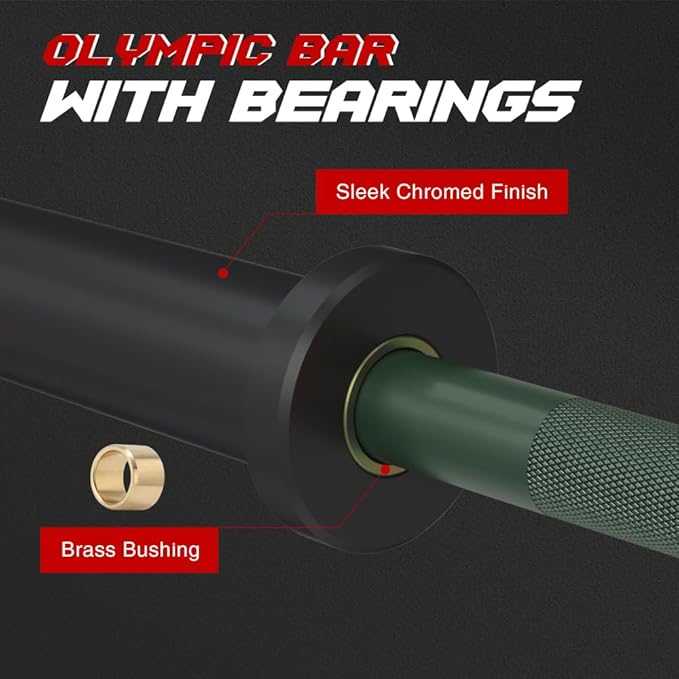 - Needle Bearings & Sleeves: This Olympic barbell adopts two needle bearings and brass bushings inside keeps the rotating sleeves, which can reduce reduce stress on your arms during exercise, ensure quiet and smooth consistent rotation of the sleeves, improve safety and comfort.
