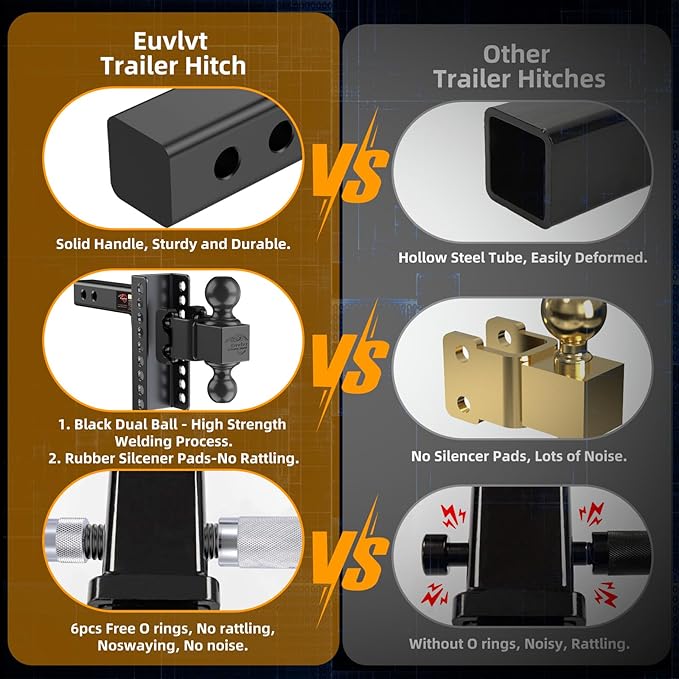 - 【3 Upgraded ANTI-RATTLE Measures】- No More Hassle or Noise When Towing! Our Adjustable Tow Hitch Comes with ① 3x Silencer Pads and ② 6x O-rings to Reduce the Sound Between Shank and The Receiver ③ 2x Rubber Washers in Between The Shank and The Receiver Removable Parts of The Ball Mounts. All These Help Cut Down Any of The Noise The Trailer May Have, Vibration-free and Quiet Towing Experience, Perfect for Scenic Rides, Off-roading, and Long-distance Hauling.