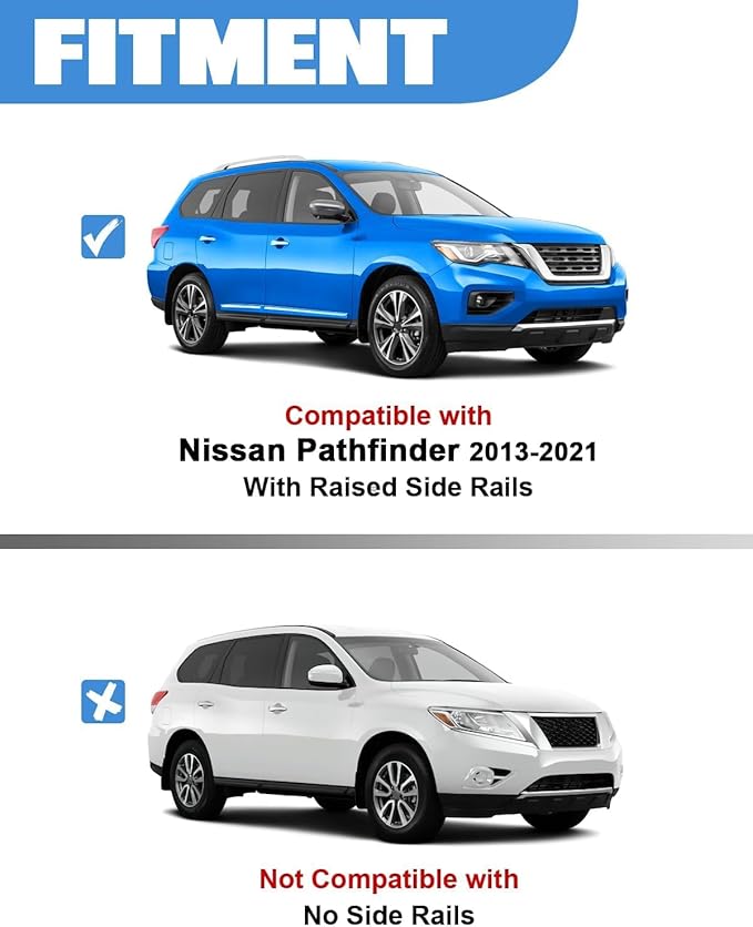 - 【Compatibility】Compatible with Nissan Pathfinder 2013 2014 2015 2016 2017 2018 2019 2020 2021 & 2014 Nissan Pathfinder Hybrid with Raised Side Rails.