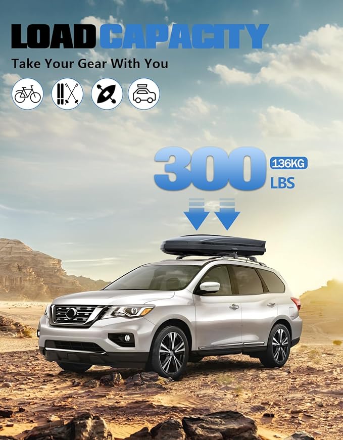 - 【Better Than OEM】Optimized re-designed crossbar by added metal mechanism lock system, this upgrade offers durable and 100% secure for anti-theft. Tie down loops on the base feet can help you secure items.Clampers are made from high grade plastic which add to extra security and durability.Max load capacity is 300lbs (130kg).