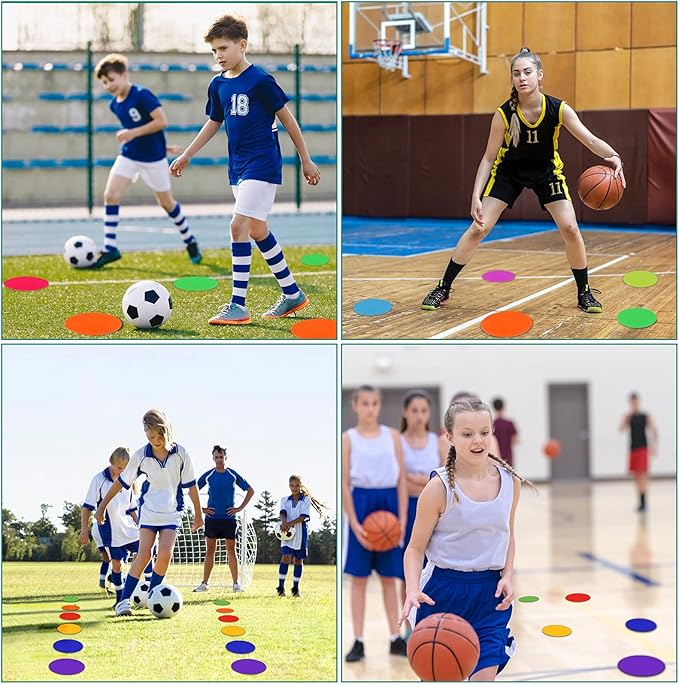 - Multi-Use: From Training to Playtime - Whether you’re coaching agility training (soccer, basketball, dance), organizing classroom activities, setting up kids'games, or marking workout stations, these agility markers adapt to every need. Their bright colors and sturdy build make them a must-have for teachers, coaches, and parents alike.